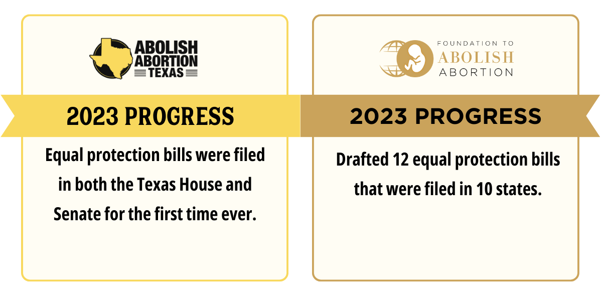 Even worse than that, when we do get equal protection legislation filed in Texas or other states, our stiffest opposition often comes from Pro-Life lobbyists and politicians. Not only are they ignoring the truth that abortion is still legal in all 50 states, many of them are OPPOSING equal protection which is the only righteous and effective answer to the murder of babies.